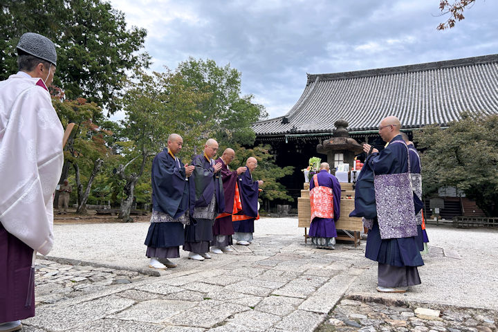 日吉神社は、真如堂が創建された平安時代の末に、比叡山の鎮守神である日吉大社の国常立尊を勧請して境内に祀られました。明治の神仏分離で分かれ、その後交流のない時期もありましたが、近年はこうして御輿が本堂に参来されるようになりました。 前夜祭は雨で、今朝も雨が残っていたので心配しましたが、御輿の参来する3時頃は曇天で、無事に神幸祭も勤められました。 一山の僧衆による読経の間に、神主や神社の氏子総代が焼香され、終わってからは子供たちによる太鼓と獅子舞の奉納が行われました。 近隣で知っている方々も多く、神主さんや総代さんなど何人もが十夜鉦講のメンバーで、「お十夜はよろしく」などと挨拶を交わしました。 日吉さんのお祭りが終わり、また一つ季節が進んだ気がしました。明日は秋の土用の入り。は気候も変わるようです。 秋 祭 り 思 わ ぬ 人 に 逢 い に け り 久保田一豊