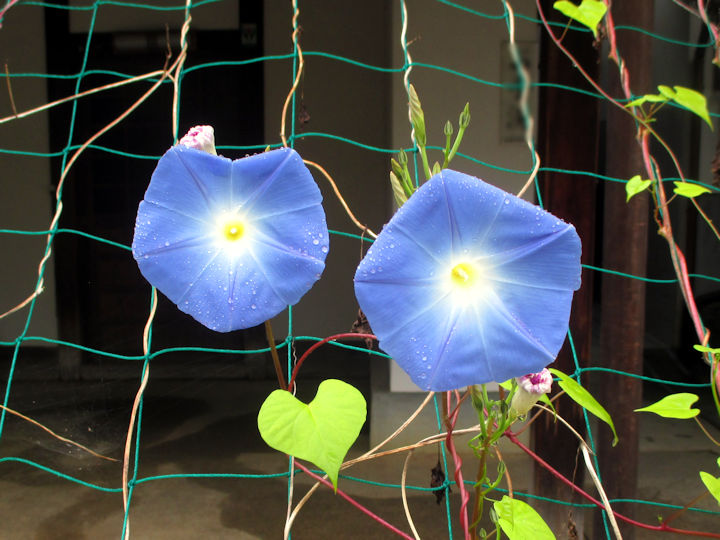 茶所前の西洋朝顔「ヘブンリーブルー」が、再びよく咲いてきました。「今ごろ?」と思われるかも知れませんが、ヘブンリーブルーの花期は8月末頃から11月頃にかけてなので、こちらは‘正常’です。ヘブンリーブルーは日照時間が短くなるにつれて開花し始め、あたたかい地域では霜が降りるまで咲くそうです。それもお得! 石蕗(つわぶき)や貴船菊(秋明菊)も咲いてきました。酔芙蓉もまだよく咲いています。 石 蕗 の 花 つ き 出 し て を る 日 向 か な 清崎敏郎