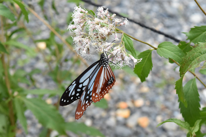 藤袴の花を目がけてやって来たのですが、浅黄斑蝶の雄がフェロモンを分泌するためには藤袴の蜜に含まれる成分(ピロリジジンアルカロイド)が不可欠で、また天敵から身を守るためにも役立つそうです。夏の間は涼しいところにいて、秋になると南下し、最後は台湾などへ向かうそうですから、京都はその経由地。少し涼しくなったと浅黄斑蝶が感じたのでしょう。 それにしても、フワフワと優雅に飛ぶその姿からは、とても台湾まで長旅が出来るとは思えません。やっと浅黄斑蝶に再開できた今日は、佳い日でした。 境内を歩いていると、金木犀の香りと何か所かで出会います。「これぞ秋!」という香りの代表格の一つですね。 浅黄斑蝶と金木犀、今日はダブルで秋を楽しめました。 半 生 を 風 と し て 生 き 秋 の 蝶 小林知佳