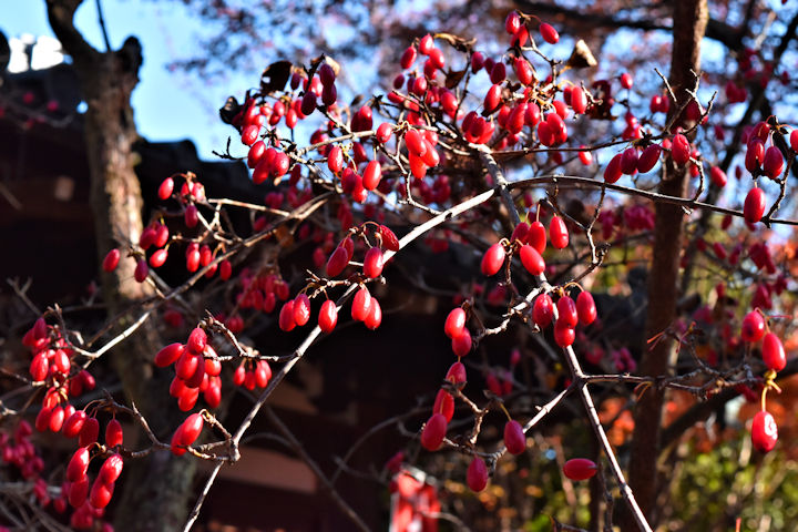 赤門の前に1本だけ葉の残ったもみじがありますが、これもカラカラに乾いて煉瓦色。それでも日を透かして見ると紅く見えます。 境内を探し回れば、どこかに綺麗な紅葉が残っていますので、いまはそれを楽しみにお越しいただければと思います。 今年はインバウンドが多く、ひょっとしたら半分以上がそうだったのではないかとも思います。マナーや風習が違うので、いろいろなトラブルも多かったです。 このままではもう管理ができません。来年は境内に入るところにゲートを設けて入山料をいただき、入ってくる人を制限することも考えています。 ようやく静かになってきた境内。いまがオススメです! 山 姥 の 杖 も や 触 れ て 散 紅 葉 富安風生