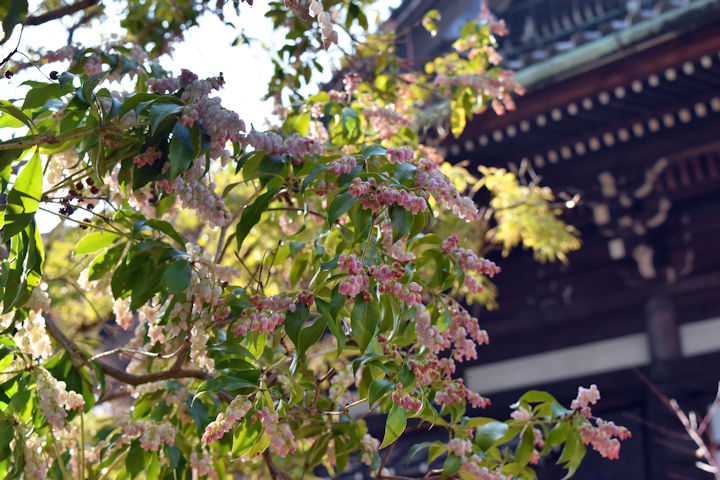 馬酔木は日に日に花の数が増えています。この花は少し薄紅掛かっていて、美しいです。 馬酔木の木が一時どんどん枯れていったため、それを補うために10株ほどの幼木を植えた時期がありました。白花だけではなく、琉球あせびという沖縄や奄美原産の品種も植えました。今年もたくさんのつぼみを付けていますので、様々な馬酔木が見られるのが楽しみです。 本堂の裏の山茱萸(さんしゅゆ)も咲き始めてきました。今年は、去年の赤い実がまだ落ち切ってなく、そこに黄色い花が咲き始めてきたので、例年にも増してきれいな景色が見られそうです。 もともと山茱萸の実は鳥が好んで食べる味ではないようですが、他の南天や千両、万両の実もまだいっぱい残っています。明らかに鳥が少なくなっている影響でしょう。 さぁ、境内の草木も始動し始めます。どうか、元気に芽吹いてくれますように。 山 茱 萸 の 黄 を 春 色 の 出 入 口 後藤比奈夫