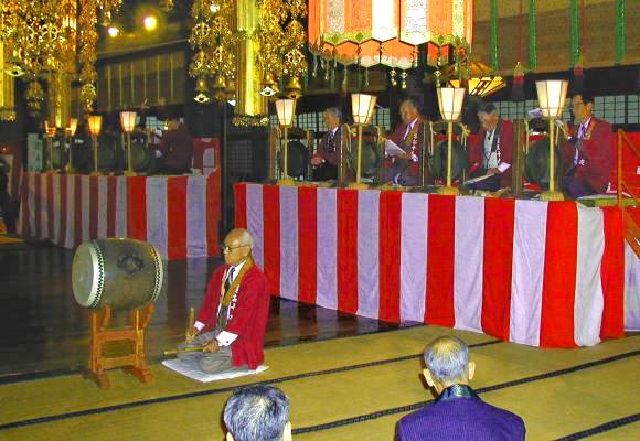 あきる野市 玉泉寺 鉦張り保存会奉納 太鼓も使う 99/11/15 |